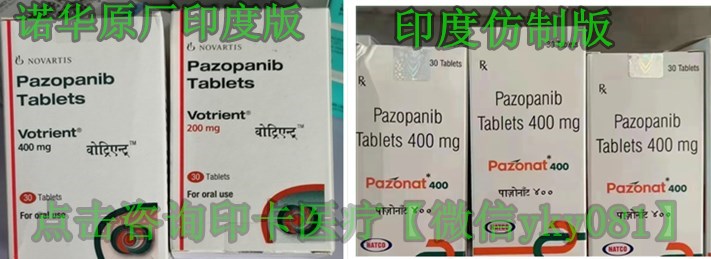 维全特/培唑帕尼/帕唑帕尼最早是2009年10月获美国食品与药品管理局(FDA)批准上市,2021年12月在中国引进上市。当前培唑帕尼(帕唑帕尼)已经在国内获获批上市,医保后培唑帕尼个人自费一个月价格是在16000元左右,对于长期需要接受治疗的患者家庭来说经济压力还是比较大的,而印度培唑帕尼|印度帕唑帕尼的出现可以在很大程度上帮助缓解经济压力。现在如今购买一盒印度培唑帕尼价格|印度帕唑帕尼价格|印度维全特价格大概是在1200~2500元左右,印卡医疗(微信yky081)可以帮助国内消费者足不出户从印度权威连锁药房药店直发家,省时省力。